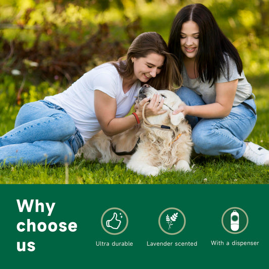 Petdet Dog Poop Bags - 300 Count, Extra Thick Waste Bags for Pets, Lavender Scented, 1 Dispenser, Green